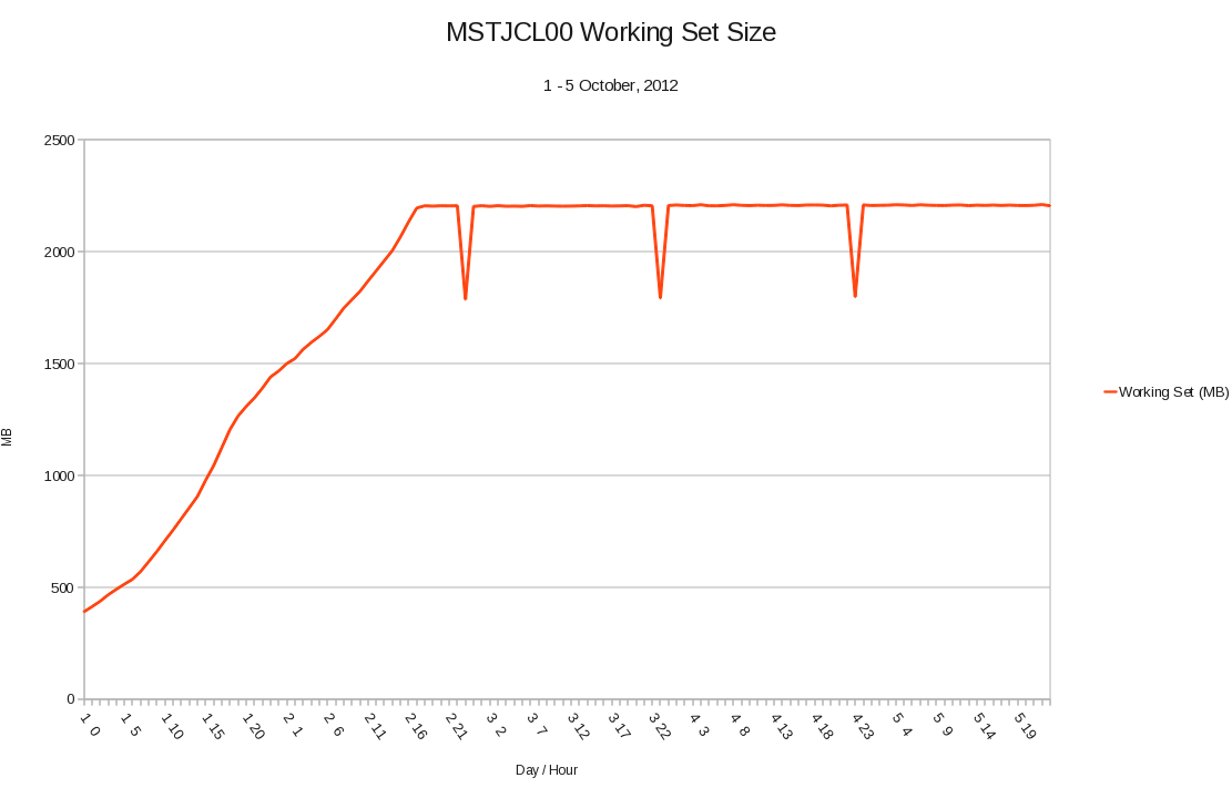 - The working set rises from a “normal” value just after IPL until it reaches a steady state.