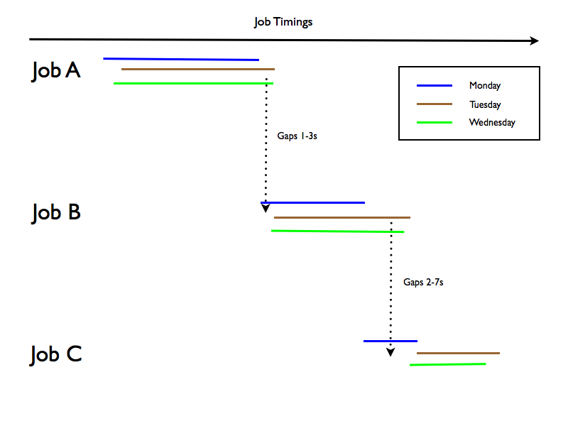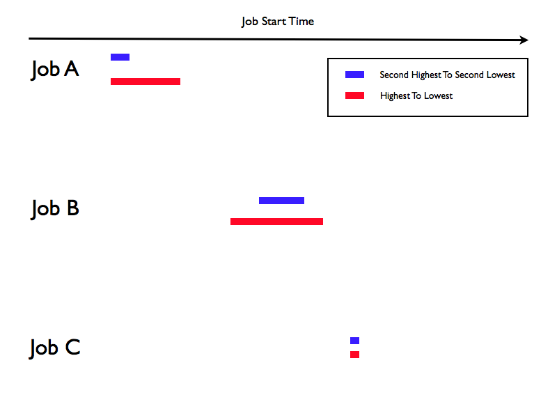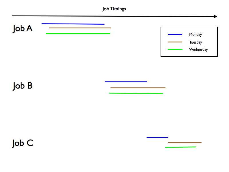- There were many jobs much like Job A and Job B, with lots of variation in start time.