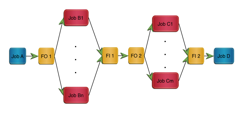 In this implementation Job B is replaced by FO 1, m clones and FI 1.