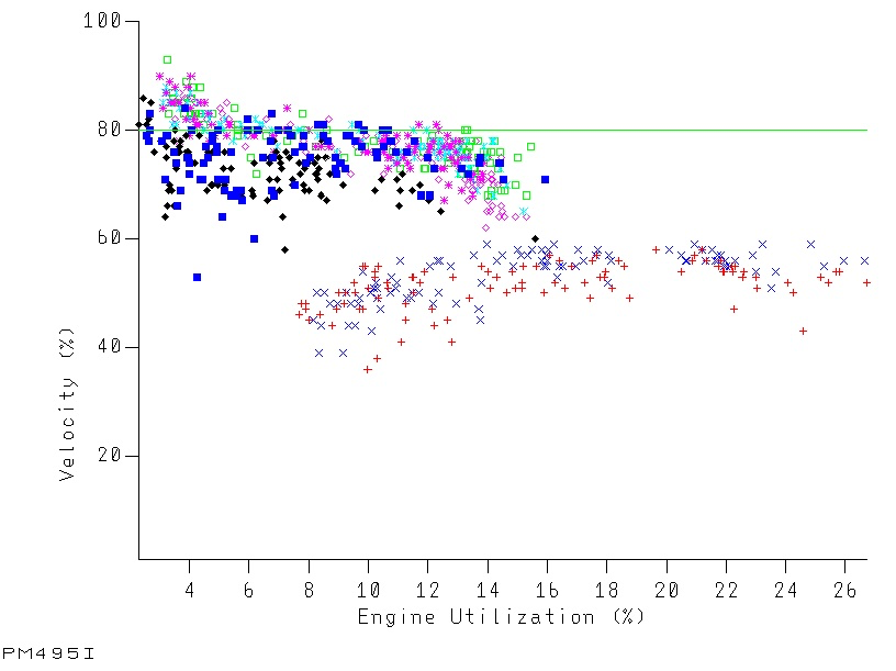 - It shows how the velocity of a service class period varies with the GCP CPU used.